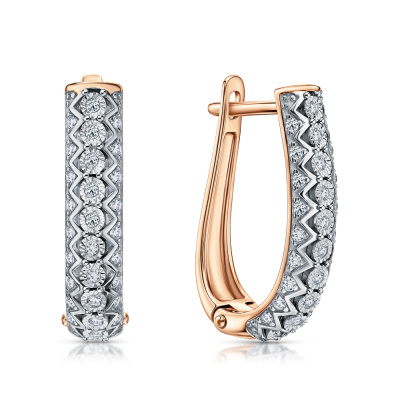 Серьги с 56 бриллиантами природными, 0.27 карат, огранка круг 17 граней, цвет 2, чистота 2, тип огранки А; Розовое и белое золото 585 пробы.