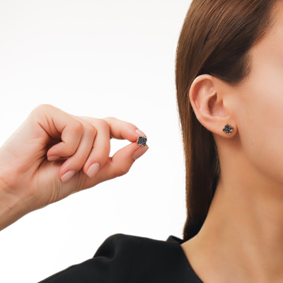 Серьги с 42 сапфирами черными природными, 0.19 карат; Розовое золото 585 пробы.