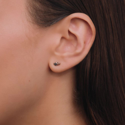 Серьги с 2 бриллиантами природными, 0.007 карат, огранка круг 17 граней, цвет 3, чистота 3, тип огранки Б; Серебро 925 пробы.