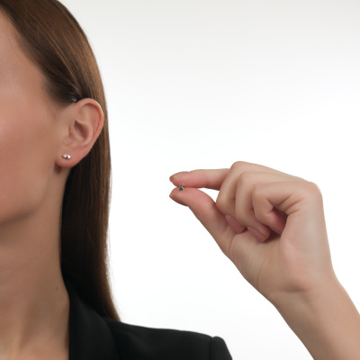 Серьги с 2 бриллиантами природными, 0.005 карат, огранка круг 17 граней, цвет 3, чистота 3, тип огранки Б; Серебро 925 пробы.