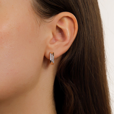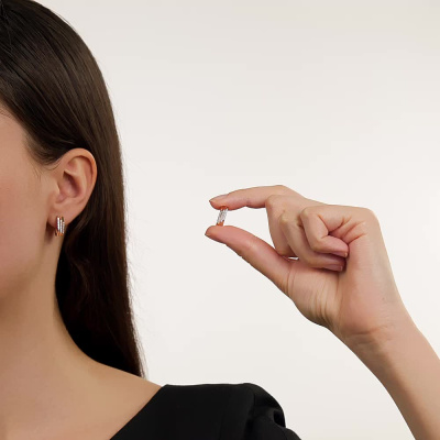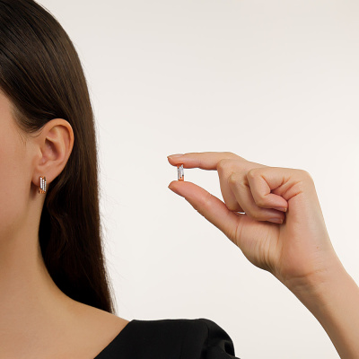 Серьги с 36 бриллиантами природными, 0.11 карат, огранка круг 17 граней, цвет 2, чистота 2, тип огранки А; Розовое золото 585 пробы.