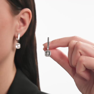 Серьги с 2 бриллиантами природными, 0.009 карат, огранка круг 17 граней, цвет 3, чистота 3, тип огранки Б; Серебро 925 пробы.