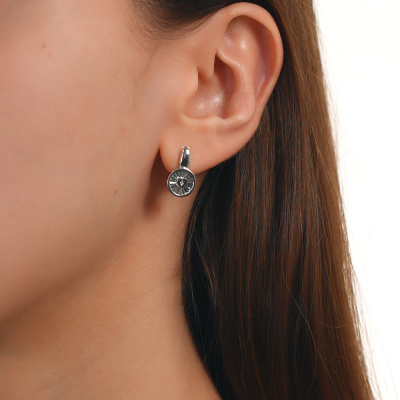 Серьги с 2 бриллиантами природными, 0.009 карат, огранка круг 17 граней, цвет 3, чистота 3, тип огранки Б; Серебро 925 пробы.