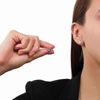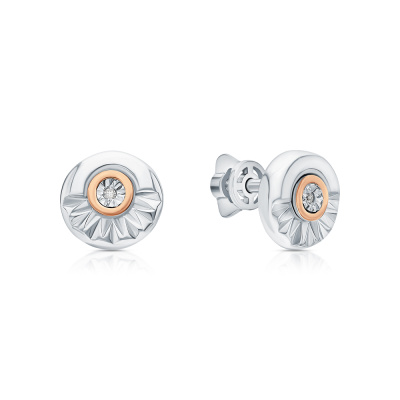 Серьги с 2 бриллиантами природными, 0.009 карат, огранка круг 17 граней, цвет 3, чистота 3, тип огранки Б; Серебро 925 пробы.
