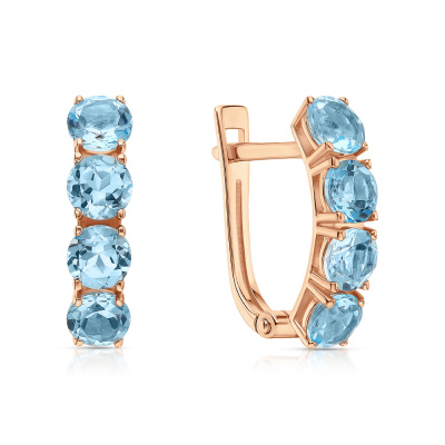 Серьги с 8 топазами свисс природными, 2.27 карат; Розовое золото 585 пробы.