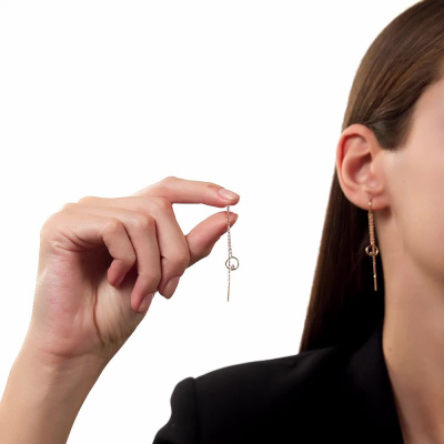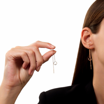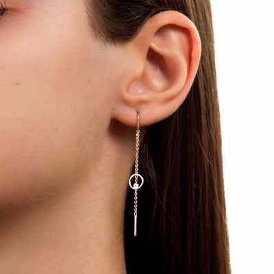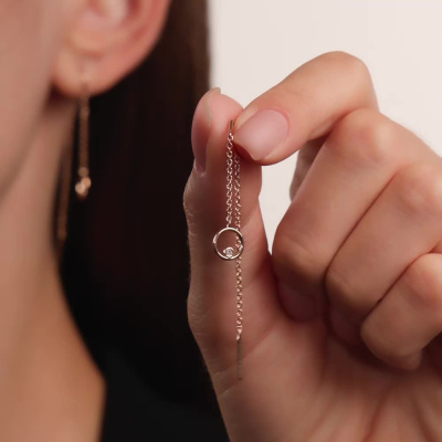 Серьги с 2 бриллиантами природными, 0.01 карат, огранка круг 17 граней, цвет 2, чистота 2, тип огранки А; Розовое золото 585 пробы.