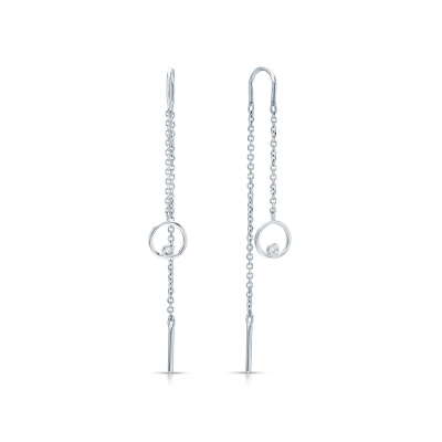 Серьги с 2 бриллиантами природными, 0.01 карат, огранка круг 17 граней, цвет 2, чистота 2, тип огранки А; Белое золото 585 пробы.