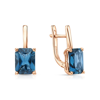 Серьги с 2 топазами лондон природными, 4.53 карат; Розовое золото 585 пробы.