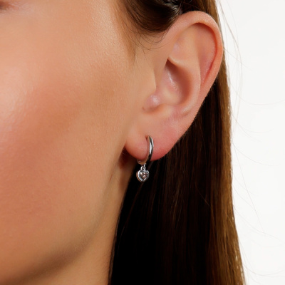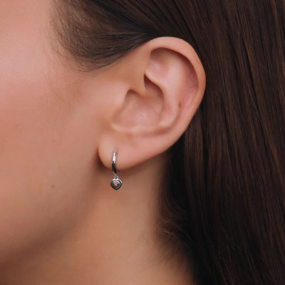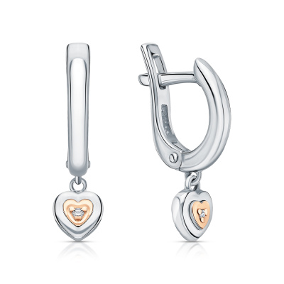 Серьги с 2 бриллиантами природными, 0.007 карат, огранка круг 17 граней, цвет 3, чистота 3, тип огранки Б; Серебро 925 пробы.