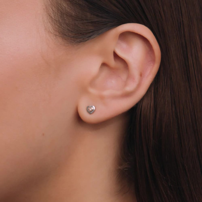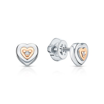 Серьги с 2 бриллиантами природными, 0.007 карат, огранка круг 17 граней, цвет 3, чистота 3, тип огранки Б; Серебро 925 пробы.