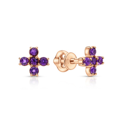 Серьги с 10 аметистами природными, 0.16 карат; Розовое золото 375 пробы.
