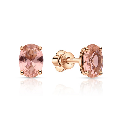 Серьги с 2 наноситалами морганитами, 1.43 карат; Розовое золото 375 пробы.