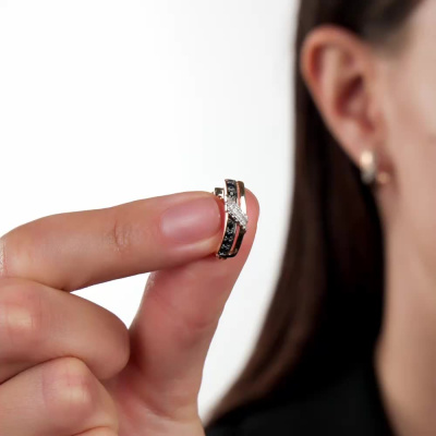 Серьги с 20 бриллиантами природными, 0.05 карат, огранка круг 17 граней, цвет 2, чистота 2, тип огранки А; 12 сапфирами природными, 0.2 карат, цвет 2, чистота 2; Розовое золото 585 пробы.