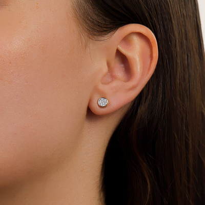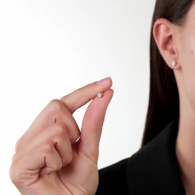 Серьги с 14 бриллиантами природными, 0.12 карат, огранка круг 57 граней, цвет 3, чистота 6; Желтое золото 585 пробы.