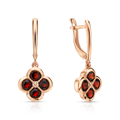Золотые серьги с гранатами природными