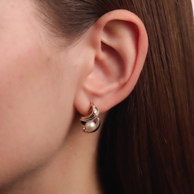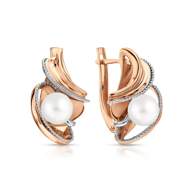 Серьги с 2 жемчугами пресноводными культ.белыми; Розовое золото 585 пробы.