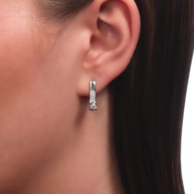Серьги с 2 бриллиантами природными, 0.2 карат, огранка круг 57 граней, цвет 3, чистота 6, тип огранки А; 26 бриллиантами природными, 0.07 карат, огранка круг 57 граней, цвет 3, чистота 6, тип огранки А; Платина 950 пробы.