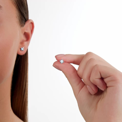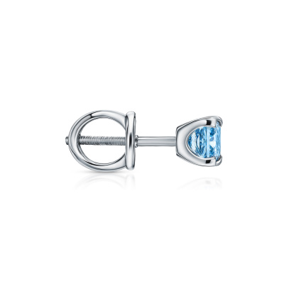 Серьги с 2 бриллиантами выращенными, 1.14 карат, огранка принцесса 65 граней, цвет Голубой, чистота 5, тип огранки А; Белое золото 585 пробы.
