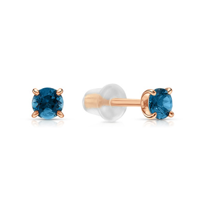 Серьги с 2 топазами лондон природными, 0.56 карат; силикон; Розовое золото 375 пробы.