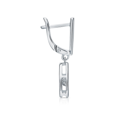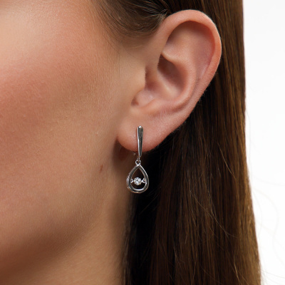 Серьги с 2 бриллиантами выращенными, 0.22 карат, огранка круг 57 граней, цвет 3, чистота 5; Серебро 925 пробы.