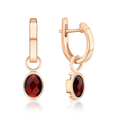 Серьги с 2 гранатами природными, 1.83 карат; Розовое золото 585 пробы.