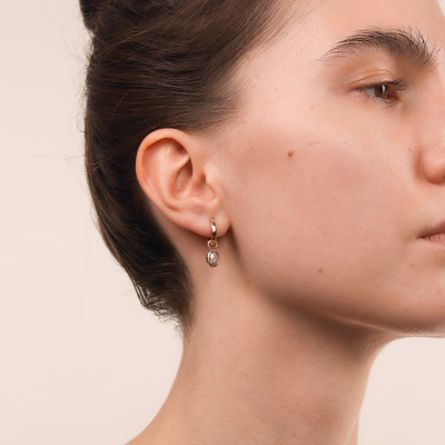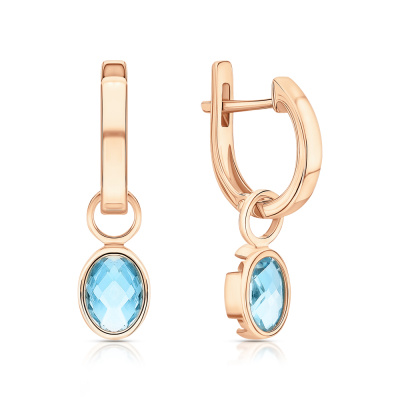 Серьги с 2 топазами скай природными, 1.71 карат; Розовое золото 585 пробы.