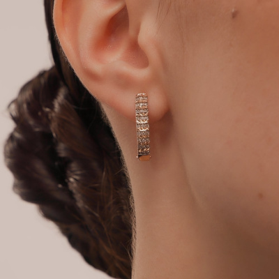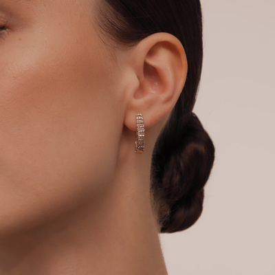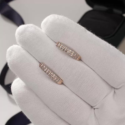 Серьги с 54 бриллиантами природными, 0.18 карат, огранка круг 17 граней, цвет 2, чистота 2, тип огранки А; Розовое золото 585 пробы.
