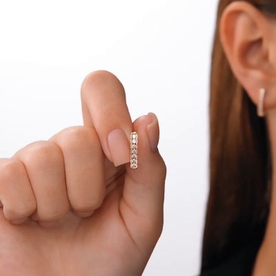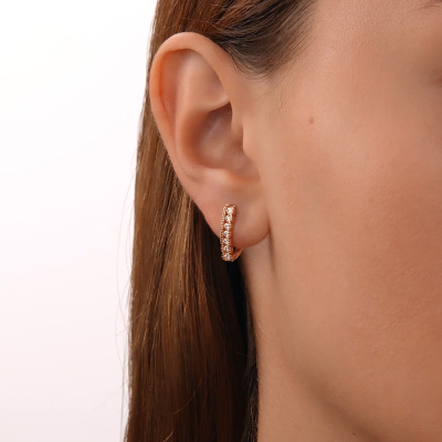 Серьги с 14 бриллиантами природными, 0.39 карат, огранка круг 57 граней, цвет 3, чистота 6, тип огранки А; Розовое золото 585 пробы.