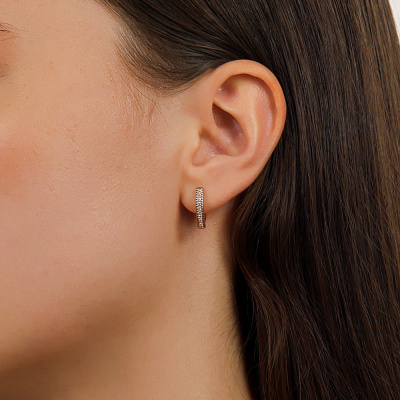 Серьги с 18 бриллиантами природными, 0.18 карат, огранка круг 57 граней, цвет 3, чистота 6, тип огранки А; Розовое золото 585 пробы.