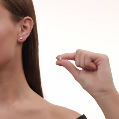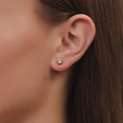 Серьги с 2 бриллиантами выращенными, 1.03 карат, огранка круг 57 граней, цвет 4, чистота 5, тип огранки А; Розовое золото 585 пробы.