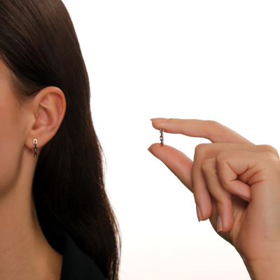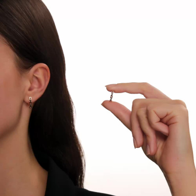 Серьги с 12 бриллиантами черными природными облагороженными, 0.08 карат, огранка круг 57 граней, цвет 7, чистота 6, тип огранки А; Розовое золото 585 пробы.