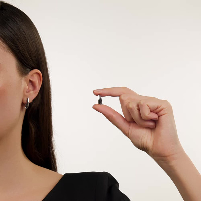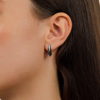 Серьги с 34 бриллиантами черными природными облагороженными, 0.13 карат, огранка круг 57 граней, цвет 7, чистота 6, тип огранки А; Белое золото 585 пробы.