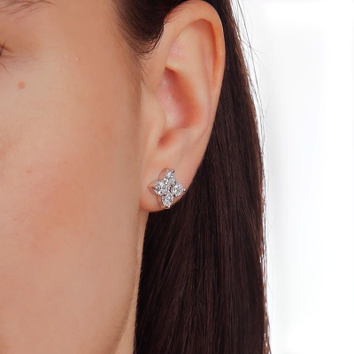 Серьги с 8 бриллиантами выращенными, 1.14 карат, огранка груша 56 граней, цвет 3, чистота 5, тип огранки А; 2 бриллиантами выращенными, 0.08 карат, огранка круг 57 граней, цвет 3, чистота 5, тип огранки А; Белое золото 585 пробы.