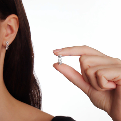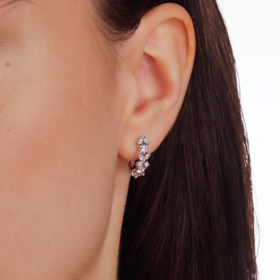 Серьги с 4 бриллиантами выращенными, 0.43 карат, огранка круг 57 граней, цвет 3, чистота 5, тип огранки А; 16 бриллиантами выращенными, 0.45 карат, огранка маркиз 55 граней, цвет 3, чистота 5, тип огранки А; Белое золото 585 пробы.