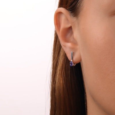 Серьги с 2 бриллиантами природными, 0.01 карат, огранка круг 57 граней, цвет 3, чистота 6, тип огранки А; 2 танзанитами природными, 0.54 карат; Белое золото 585 пробы.