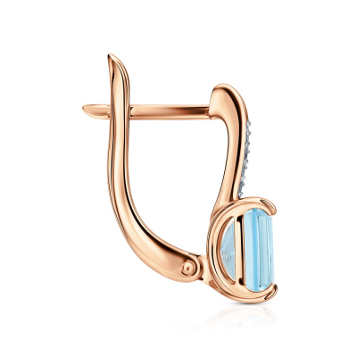 Серьги с 8 бриллиантами природными, 0.03 карат, огранка круг 17 граней, цвет 2, чистота 2, тип огранки А; 2 топазами скай природными, 2.37 карат; Розовое золото 585 пробы.