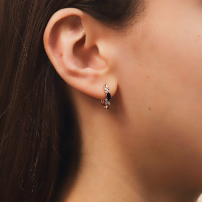 Серьги с 12 бриллиантами природными, 0.05 карат, огранка круг 17 граней, цвет 2, чистота 2, тип огранки А; 2 сапфирами природными, 0.4 карат, цвет 2, чистота 2, тип огранки Б; Розовое золото 585 пробы.