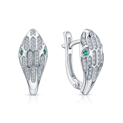 Серьги с 82 бриллиантами природными, 0.15 карат, огранка круг 17 граней, цвет 2, чистота 2, тип огранки А; 4 изумрудами природными, 0.02 карат, цвет 3, чистота 3, тип огранки В; Белое золото 585 пробы.