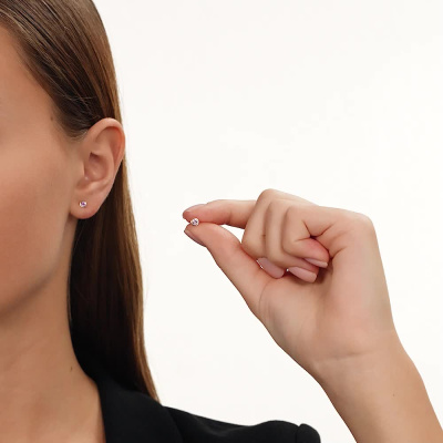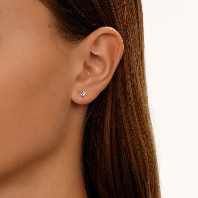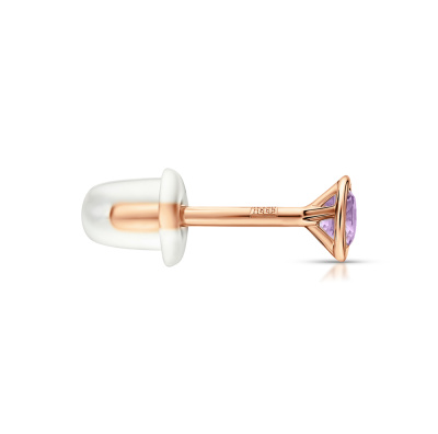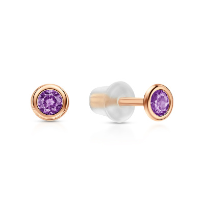 Серьги с 2 аметистами природными, 0.19 карат; Розовое золото 585 пробы.