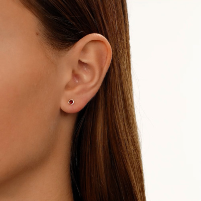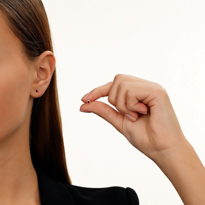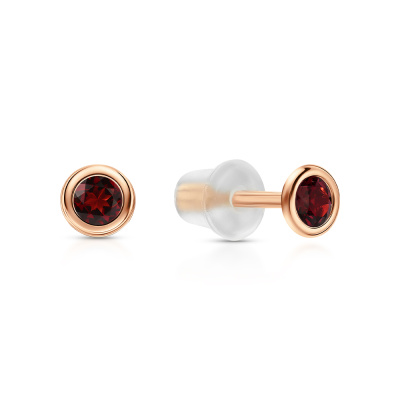 Серьги с 2 гранатами природными, 0.26 карат; Розовое золото 585 пробы.