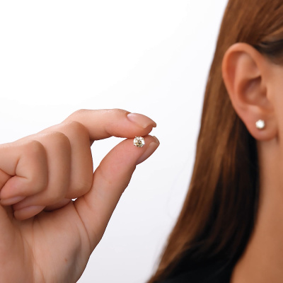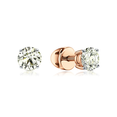 Серьги с 1 бриллиантом желтым природным, 0.51 карат, огранка круг 57 граней, цвет 8-5, чистота 5, тип огранки А; 1 бриллиантом желтым природным, 0.5 карат, огранка круг 57 граней, цвет 8-5, чистота 3, тип огранки А; Розовое золото 585 пробы.
