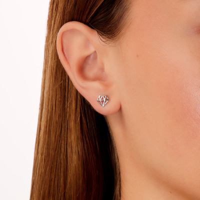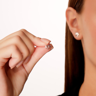 Серьги с 2 бриллиантами природными, 0.009 карат, огранка круг 17 граней, цвет 3, чистота 3, тип огранки Б; Серебро 925 пробы.