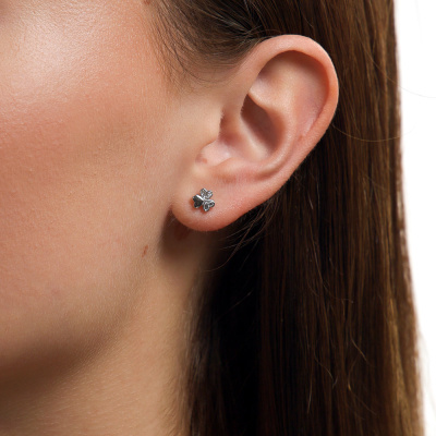 Серьги с 6 бриллиантами природными, 0.02 карат, огранка круг 17 граней, цвет 3, чистота 3, тип огранки Б; Серебро 925 пробы.