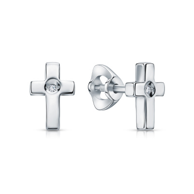 Серьги с 2 бриллиантами природными, 0.009 карат, огранка круг 17 граней, цвет 3, чистота 3, тип огранки Б; Серебро 925 пробы.