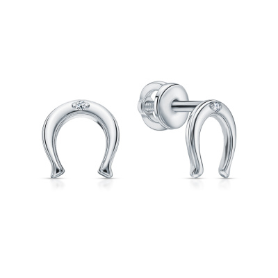 Серьги с 2 бриллиантами природными, 0.009 карат, огранка круг 17 граней, цвет 3, чистота 3, тип огранки Б; Серебро 925 пробы.