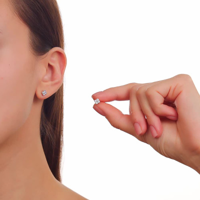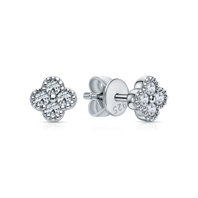 Серьги с 8 бриллиантами выращенными, 0.2 карат, огранка круг 57 граней, цвет 3, чистота 5; Серебро 925 пробы.