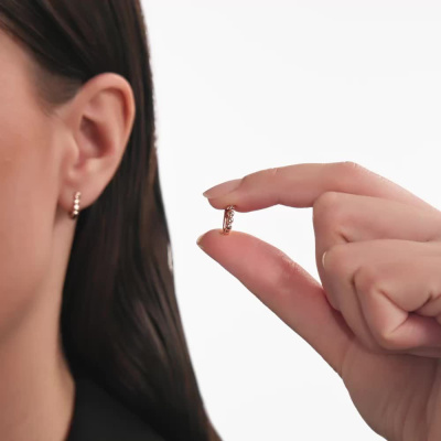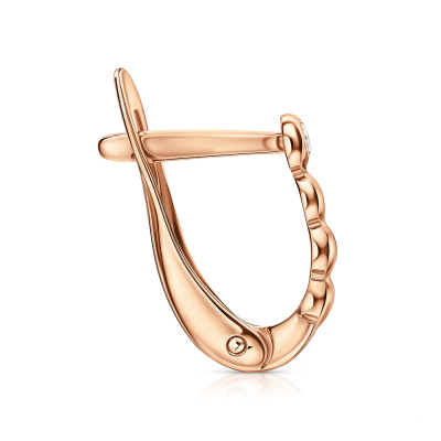 Серьги с 2 бриллиантами природными, 0.01 карат, огранка круг 57 граней, цвет 3, чистота 6; Розовое золото 375 пробы.