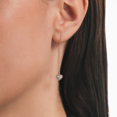 Серьги с 20 бриллиантами природными, 0.09 карат, огранка круг 17 граней, цвет 2, чистота 2, тип огранки А; Розовое золото 585 пробы.