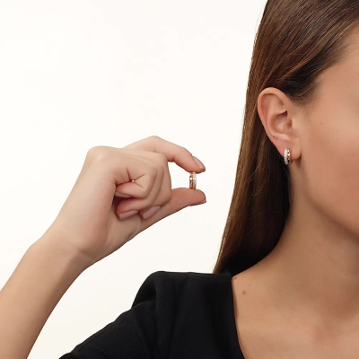 Серьги с 56 бриллиантами природными, 0.27 карат, огранка круг 17 граней, цвет 2, чистота 2, тип огранки А; Розовое золото 585 пробы.