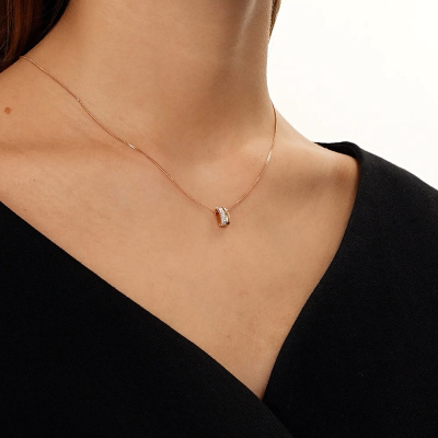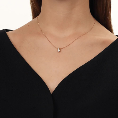 Подвеска с 17 бриллиантами природными, 0.08 карат, огранка круг 17 граней, цвет 2, чистота 2, тип огранки А; Розовое золото 585 пробы.